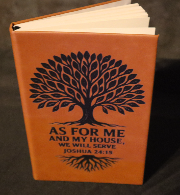 Each journal is laser-engraved in-house for a clean, permanent mark that won’t fade or peel. You can personalize it with a name, quote, scripture, or logo to create something truly unique. Perfect as a faith journal, travel log, guestbook, or thoughtful gift.